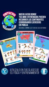 Busca la combinación de la actividad física y un aprendizaje geográfico, como lo es el identificar cada continente, además para poder desarrollar la actividad los participantes deben encontrar el siguiente continente al cual sean dirigidos y ahí realizar un ejercicio Fitness, siempre con un c socialización y colaboración.